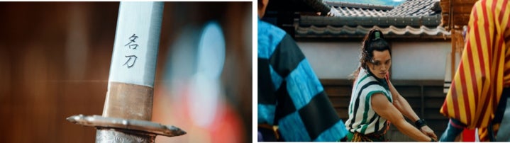 CMの見どころは、刀の音とキャストの殺陣の演技。