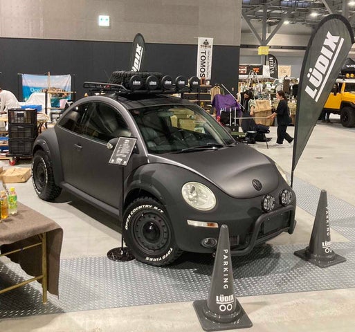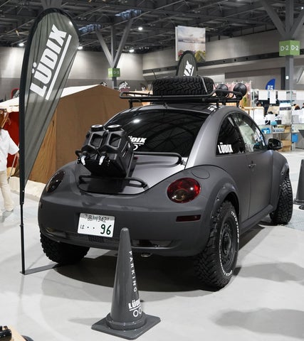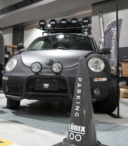 FIELDSTYLE JAPAN 2024展示会では、LÜDIXがフォルクスワーゲン ニュービートルをベースにしたオフロード仕様のカスタムマシン「NB-1」を披露しました。