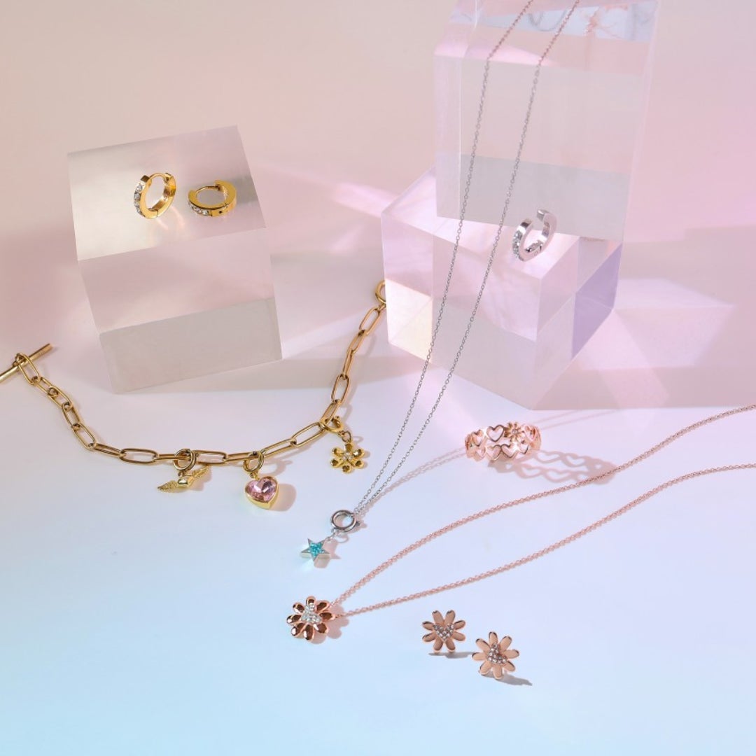 - ピンクゴールドカラーの「PINK GOLD FLOWER」やモチーフチャームが特徴
