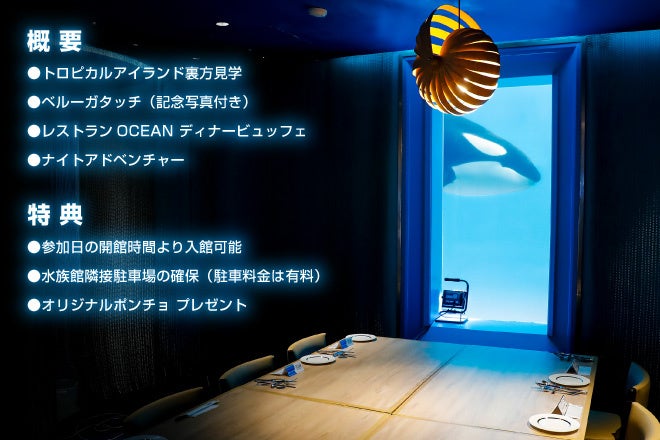 体験プログラムには、バックヤードツアーや「ベルーガにタッチ」などがあり、ディナービュッフェも提供されます。