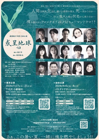 劇団狼少年の第十三回本公演「惑星地球-1.3」は、2024年7月に東京下北沢の小劇場B1で上演され、9月には宮城県仙台市のパトナシアターでも観ることができます。