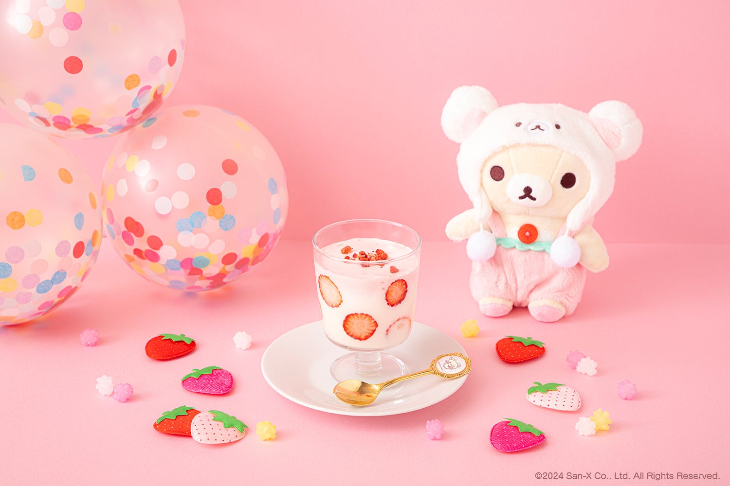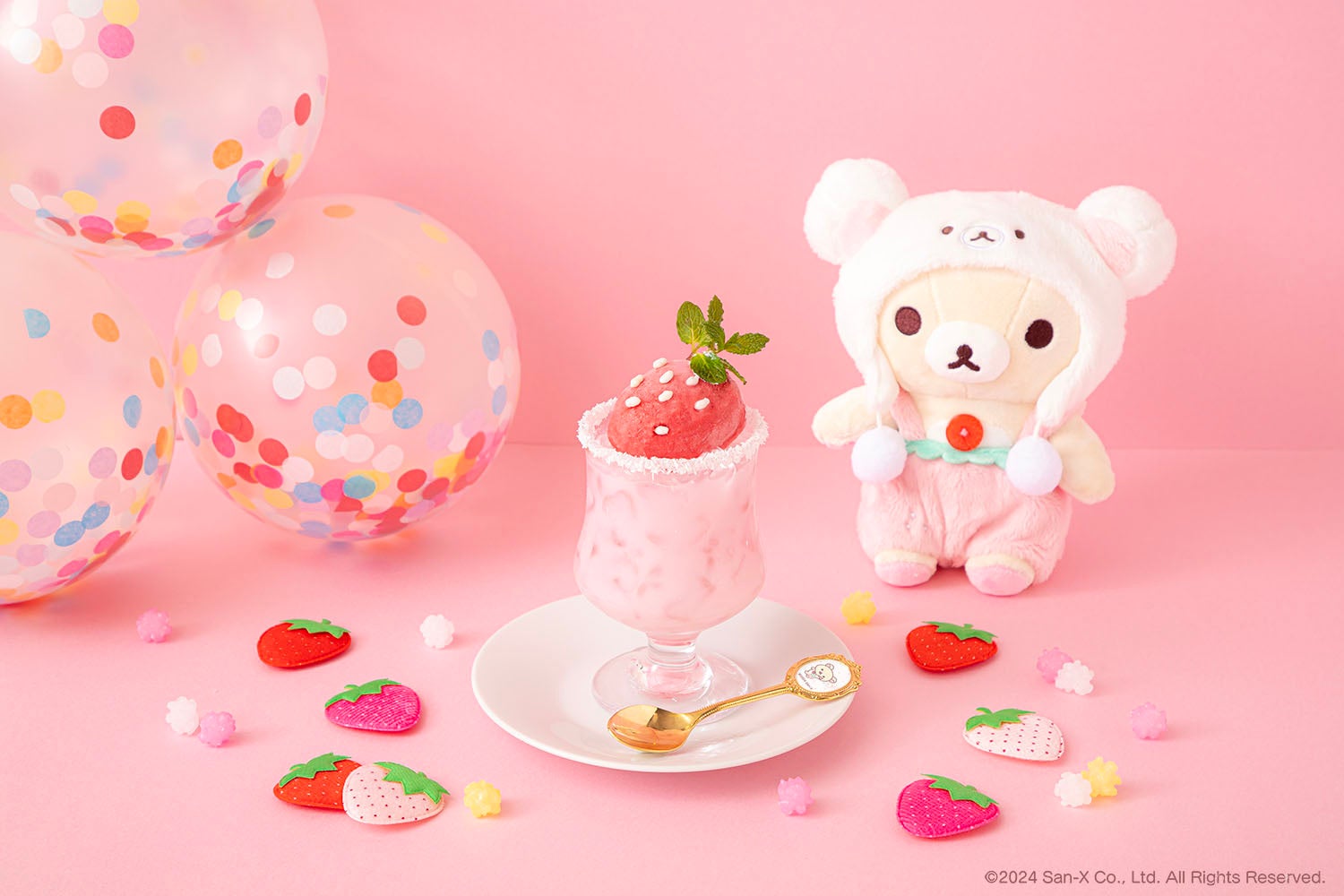 メニューには、コリラックマが大好きないちごを使用したオムライス、パスタ、パフェ、ワッフル、ヨーグルトスムージー、フロートなどが楽しめます。