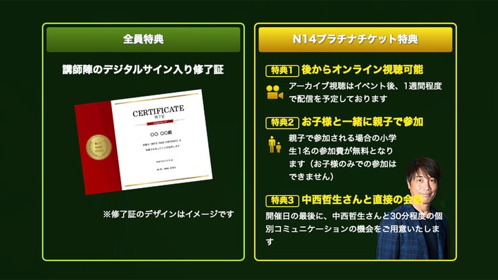 日本最高峰のフットボールカンファレンス「WHITE BOARD CONFERENCE」では、中西哲生氏、風間八宏氏、中村憲剛氏など豪華な登壇者が予定されており、参加者全員には講師陣サイン入り修了証が配布される予定です。