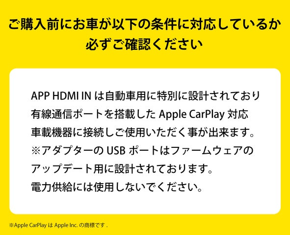この製品は車載ディスプレイオーディオに接続して使用でき、HDMI入力のない車でも様々な機器を接続して視聴可能です。