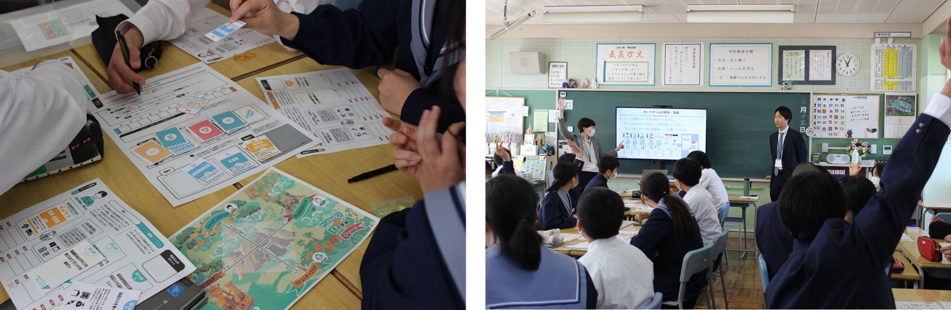 そこで、マイナビと共同開発したオリジナルカードゲーム教材が中学生向けの出張授業として導入されました。