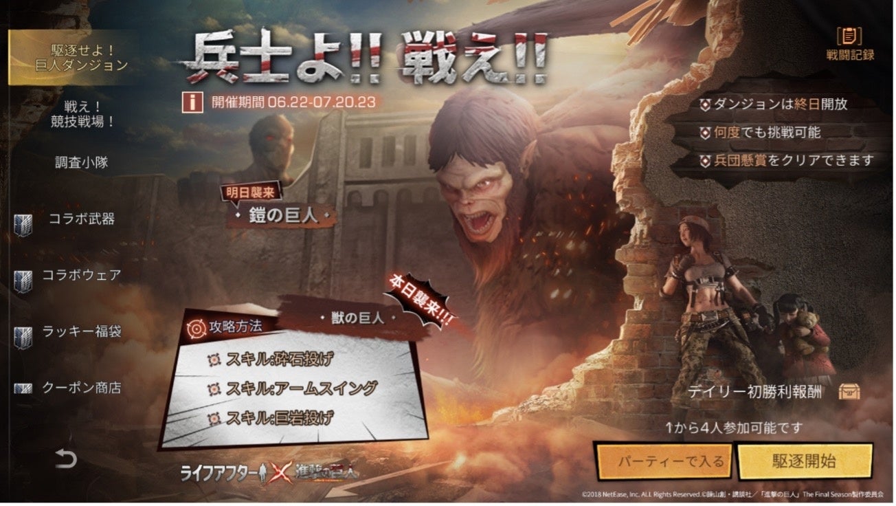 - NetEase Gamesが『ライフアフター』と『進撃の巨人』のコラボ第二弾を開催