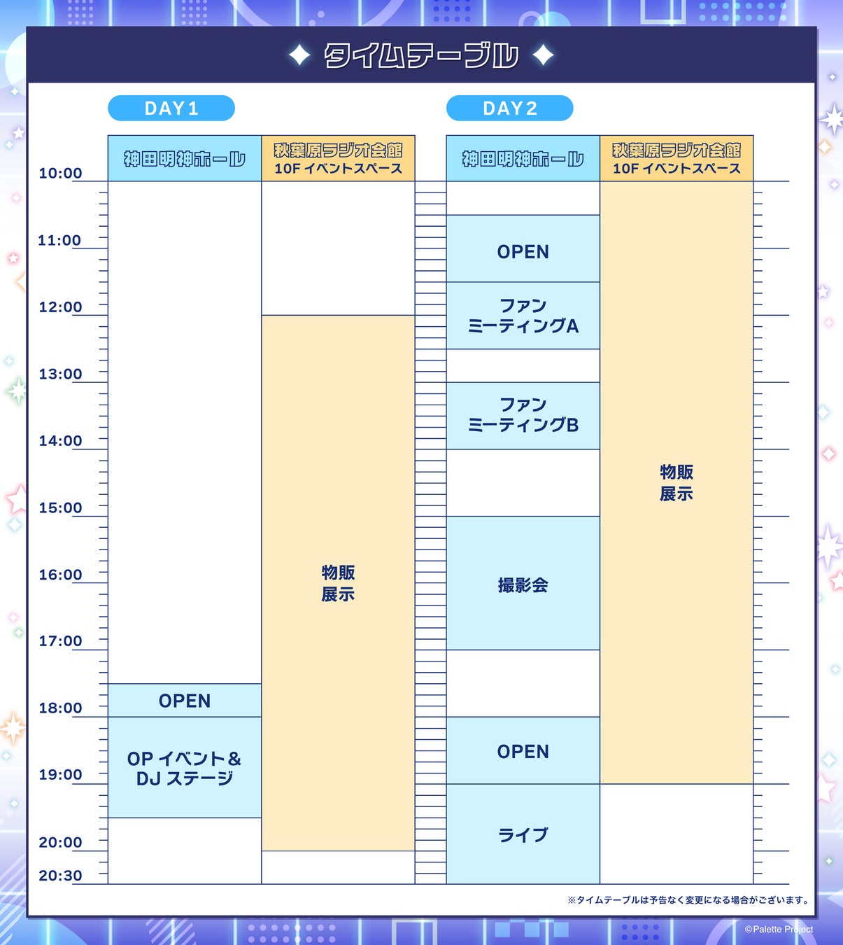 イベントでは、バーチャルアイドルユニット「Palette Project」が活躍し、3つのユニットが異なるジャンルで活動しています。