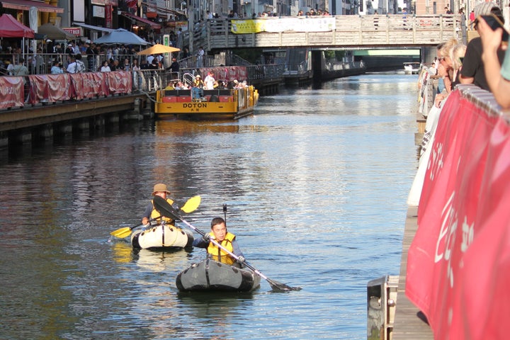 岡村の実家近くの淀川を出発し、大川へ向かい、屋形船でBBQを楽しんだり、道頓堀を目指す。