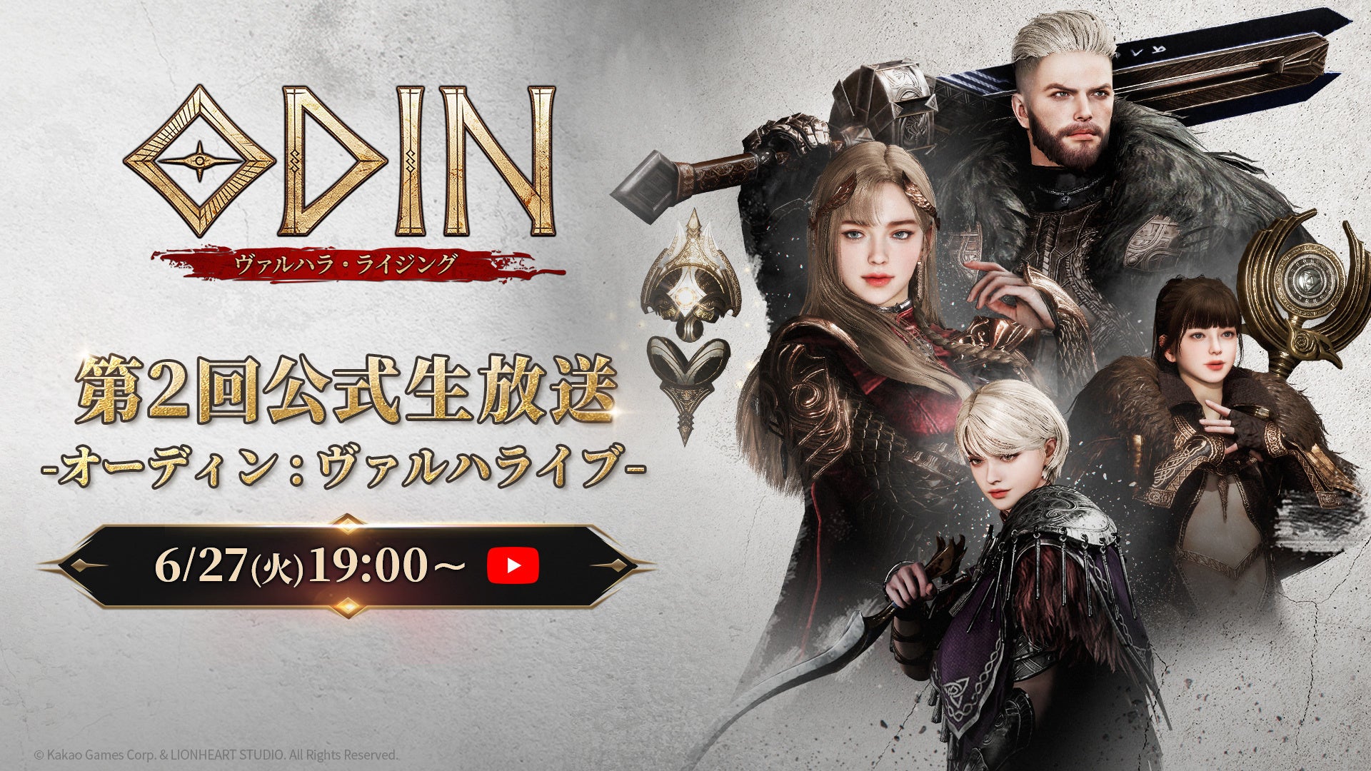 正式サービス開始日の6月15日(木)に配信しました『オーディン:ヴァルハラ・ライジング』の公式生放送「ヴァルハライブ」の第2回を公式YouTubeのライブ配信にて6月27日(火)に実施します。第2回目のヴァルハライブでは正式サービスを開始しました『オーディン:ヴァルハラ・ライジング』の基本情報のおさらいや、ギルド募集コーナーなどを中心に配信する予定ですのでご期待ください。