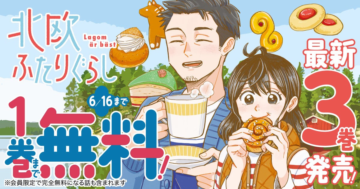 北欧を舞台にした「北欧ふたりぐらし」最新3巻が発売中です!1巻無料キャンペーンも実施中!社会人カップルのふゆ美と陽平が急展開で結婚し、スウェーデンに移住するストーリー。