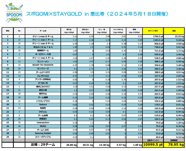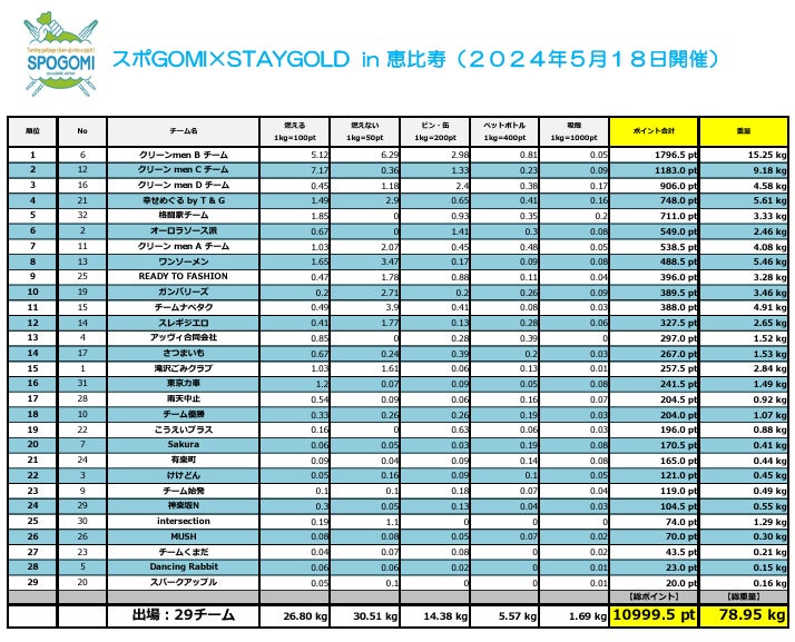 - 競技を通じて78.95kgのゴミを収集し、閉会後には飲食物販やフリマも楽しめた