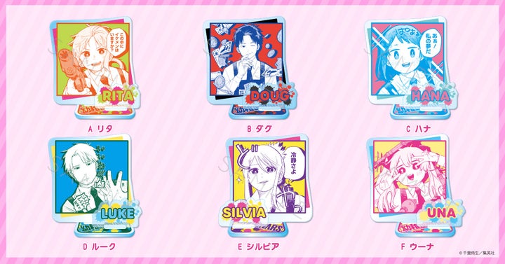 アクリルキーホルダーやアクリルスタンド、ハート形缶バッジなど、ファン必見のアイテムが揃っています。