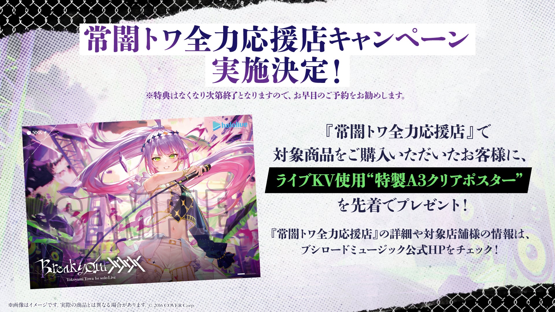 さらに、「常闇トワ全力応援店」キャンペーンも実施中で、対象商品を購入すると特製A3クリアポスターが先着でプレゼントされます。