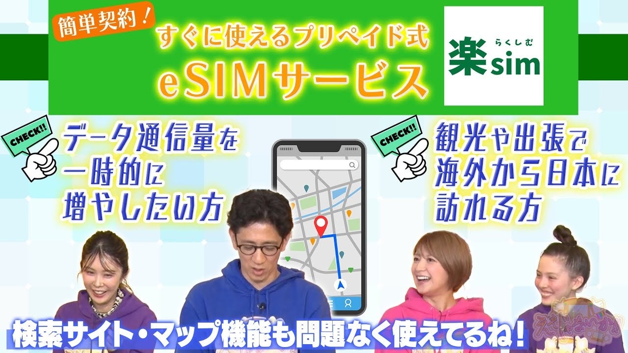 2024年5月26日にTOKYO MXで放送された「ええじゃないか!!」で、プリペイド式データ通信専用eSIM『楽sim』が紹介されました。