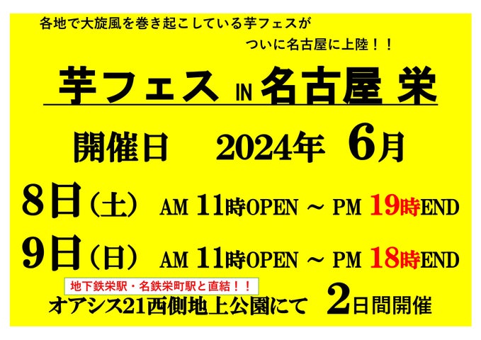 - 2024年6月8日から9日に名古屋オアシス21地上公園で芋フェス開催