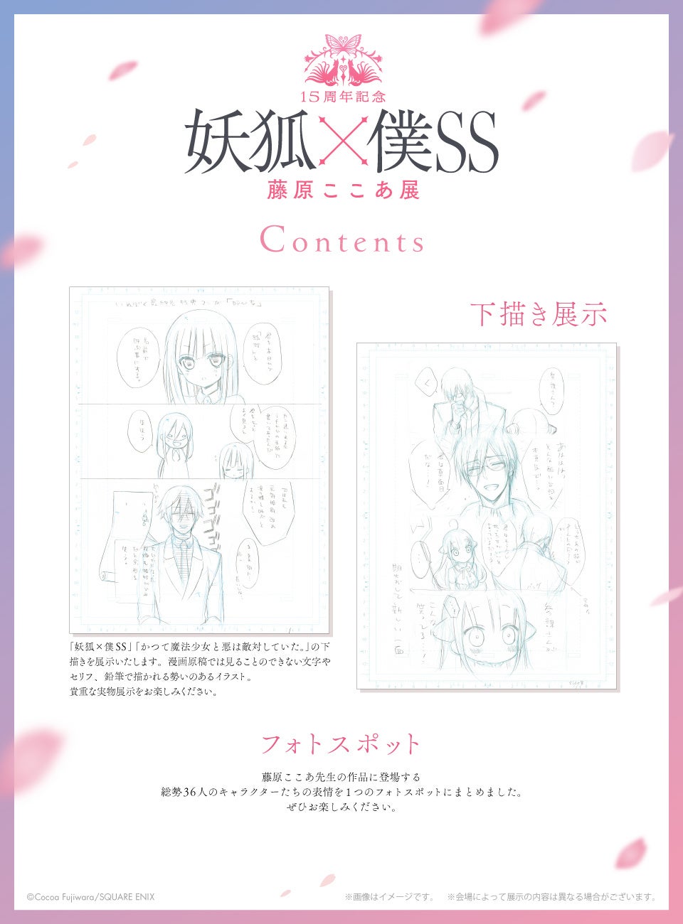 藤原ここあ先生の作品や「妖狐×僕SS」の展示を通じて、15周年を祝う展覧会となります。