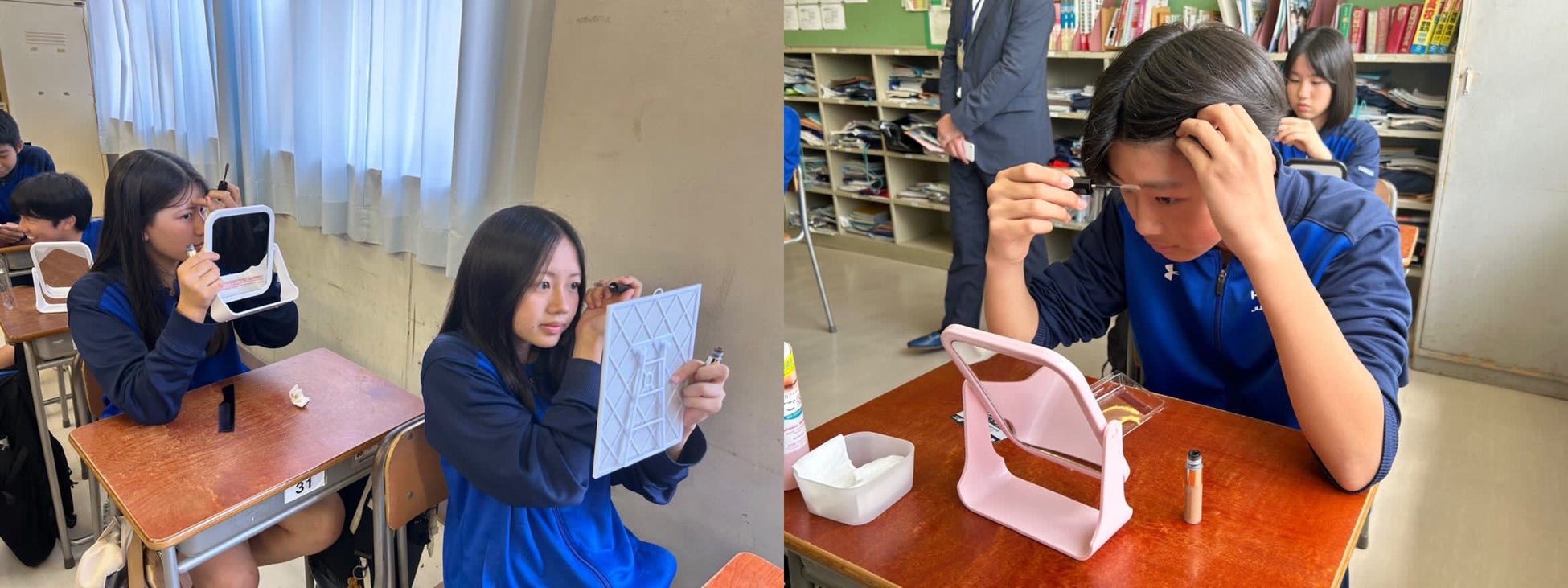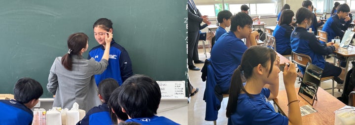 授業では眉メイクに挑戦し、自信を持つきっかけを提供。