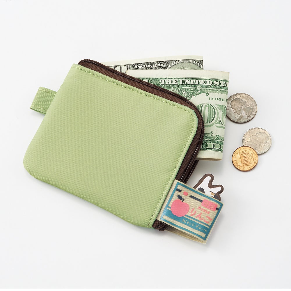 「ダンボール箱を見つけたらダイブせずにはいられないネコさん」を表現した薄型のポーチです。L字のファスナーをすべて開くと、ネコ型のファスナートップがダンボール箱タグに入るデザインです。カードケースやコインケースとして使えるフラットカードポーチ、ペンポーチや通帳ケースとして使えるフラットペンポーチ、バッグの中身の整理に使えるA5サイズのフラットポーチの3サイズをご用意しました。