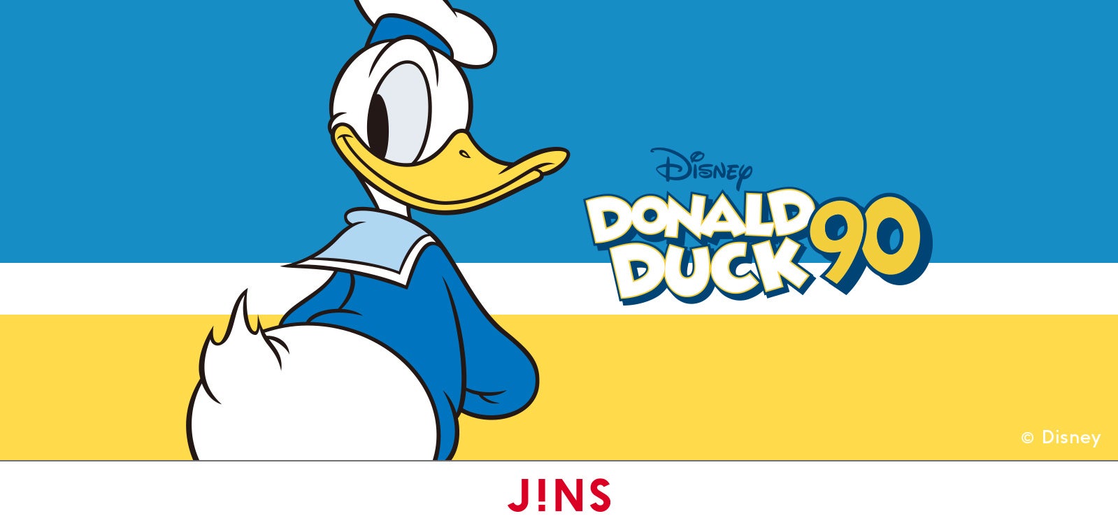 JINSのDisneyモデル「ドナルドダックバースデーモデル」は、ブルーとイエローを基調にしたデザインで、日常使いしやすいメガネや関連グッズが登場します。