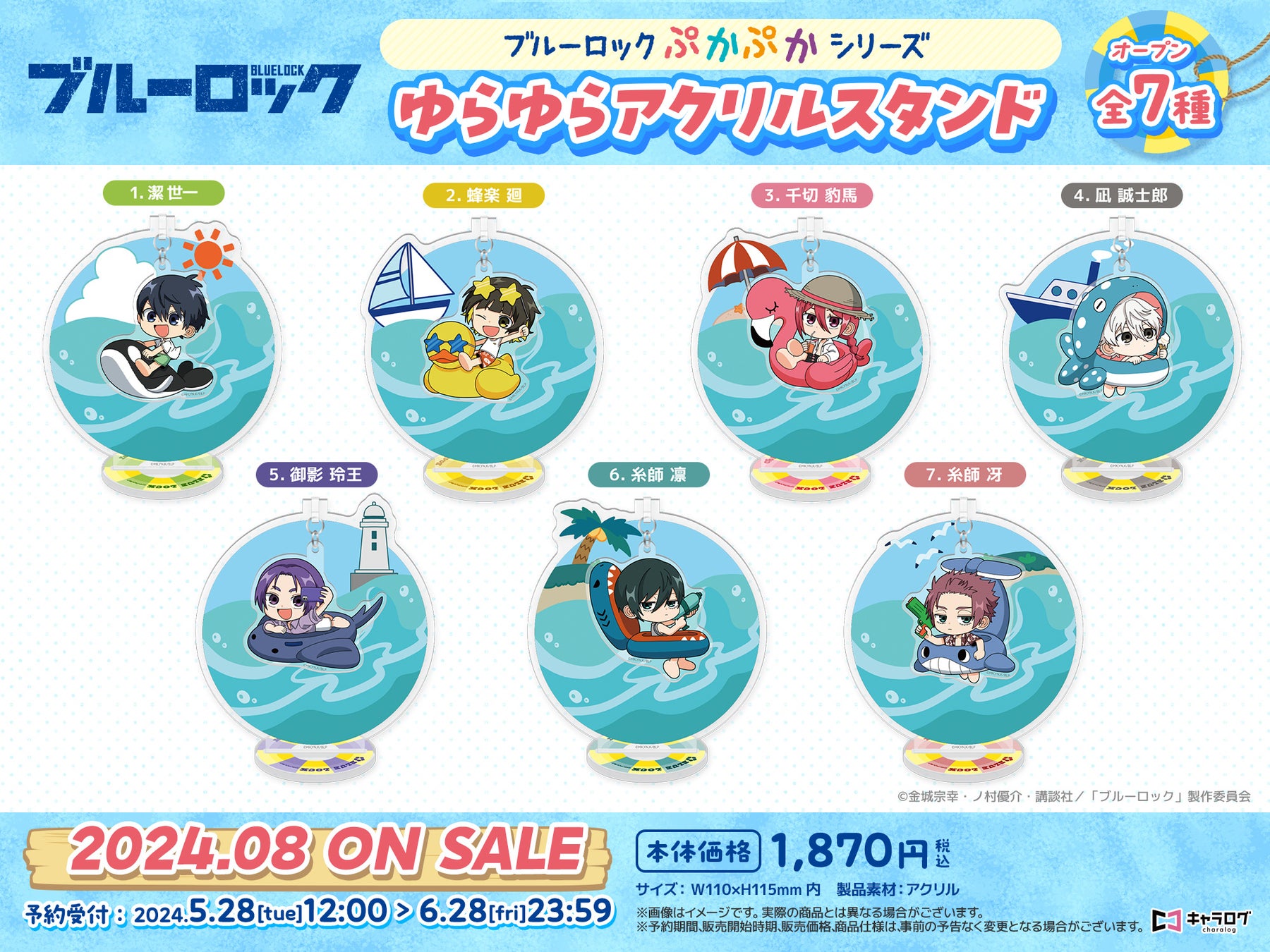 「キャラログ」販売ページでは、浮き輪で波間に浮かぶ姿をイメージしたデフォルメイラストを使用したオリジナルグッズが登場します。