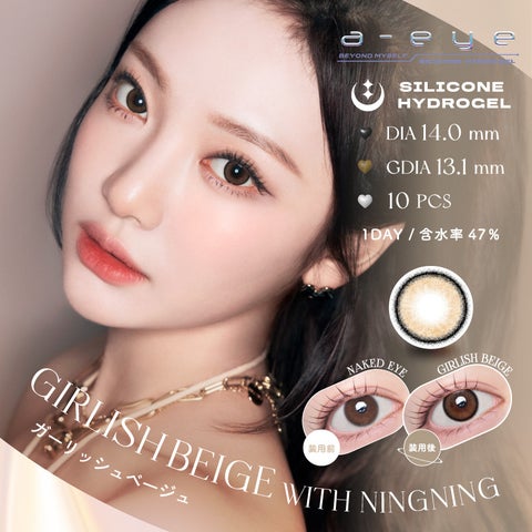 a-eyeはシリコーンハイドロゲル素材を使用し、全6色のワンデーカラコンで、14.0㎜と14.5㎜のレンズ直径があります。