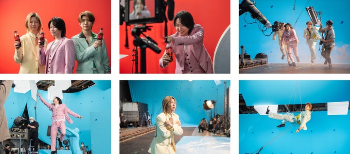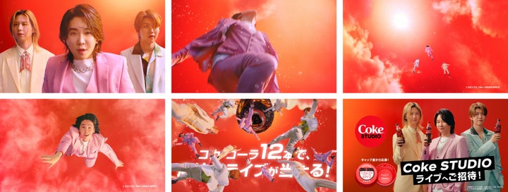 勢いよく空に駆け出し、自由で爽やかな動きを披露し、各メンバーが「コカ・コーラ」のボトルに飛び込むと、12本のボトルのキャップが閉まるシーンが描かれます。