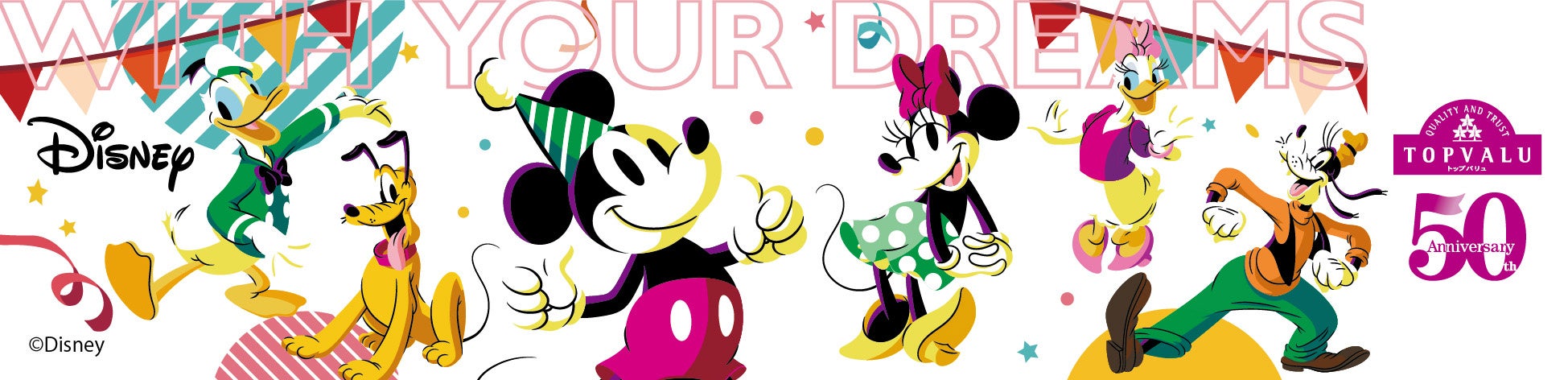 商品には「トップバリュ」「トップバリュ グリーンアイ」「トップバリュベストプライス」のブランドカラーが取り入れられ、「WITH YOUR DREAMS」がコンセプトとなっています。