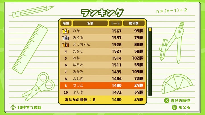 相手の定規を弾き飛ばすバトルやツバメ返しで逆転も可能!ランキング上位を目指すなら、バトルロードやクイックマッチがおすすめ。