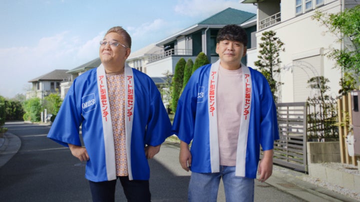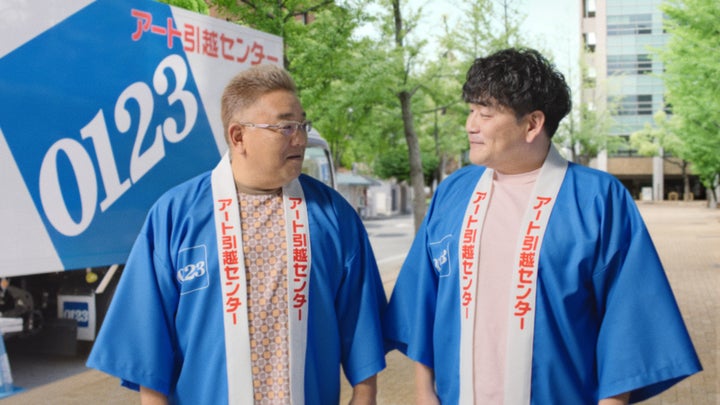 当社の新作の見どころは、ロゴ入りのはっぴを着たサンドウィッチマンが街を歩き、引越しシーンを発見するストーリーです。