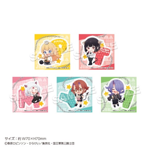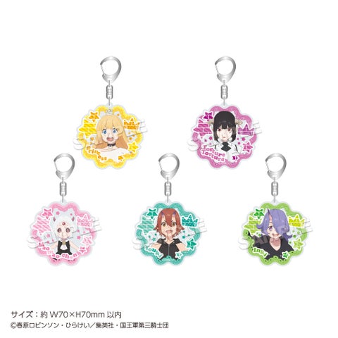 トレーディング缶バッジ、アクリルスタンド、アクリルキーホルダー、ステッカー、マグカップなどが販売されます。