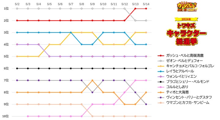 『金色のガッシュベル!!永遠の絆の仲間たち』のキャラクター総選挙が開催され、ガッシュ・ベルと高嶺清麿が1位に輝きました。