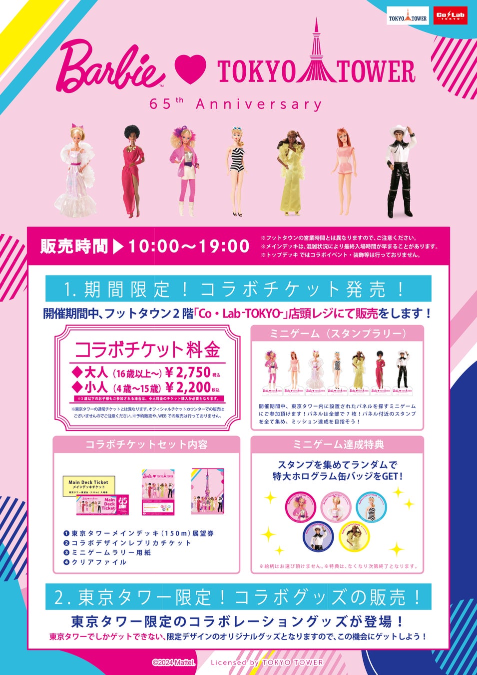 2024年6月1日(土)から、東京タワー内の「Co・Lab-TOKYO-」で「バービー」と東京タワーの開業65周年を祝う『Barbie ♡ 東京タワー』が開催されます。
