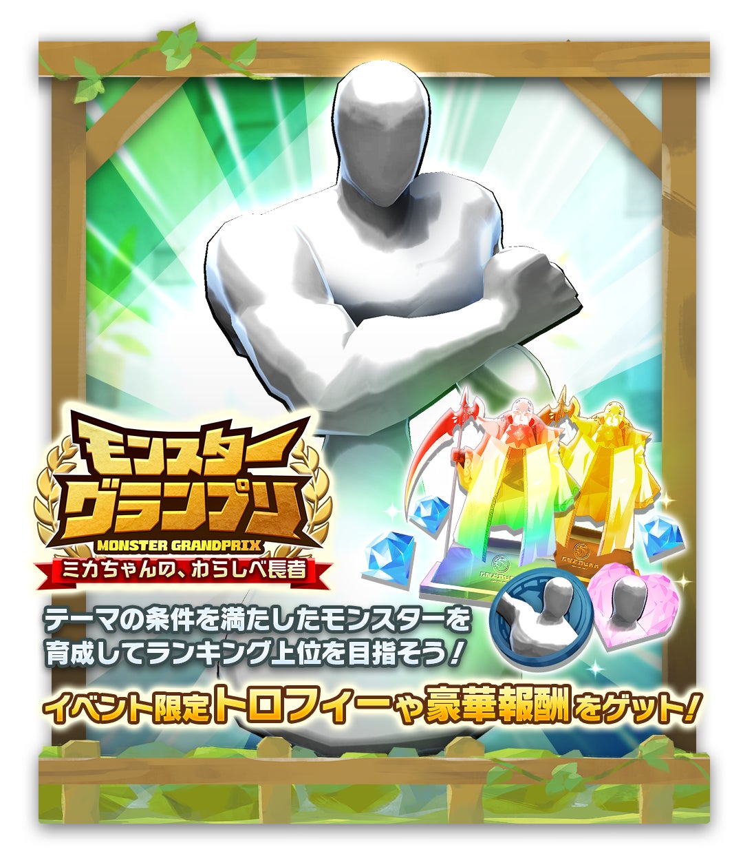 さらに、「モンスターグランプリ」という育成ランキングイベントも開催され、豪華報酬が獲得できます。