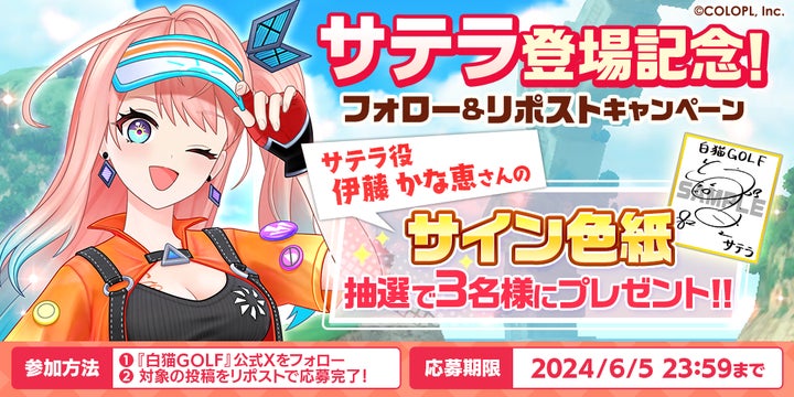 - 5月31日(金)16:00、新ゴルファー「サテラ」登場!
