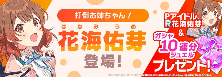 - 花海 佑芽登場記念でRプロデュースアイドル『【学園生活】花海佑芽』とジュエル2,500個プレゼント