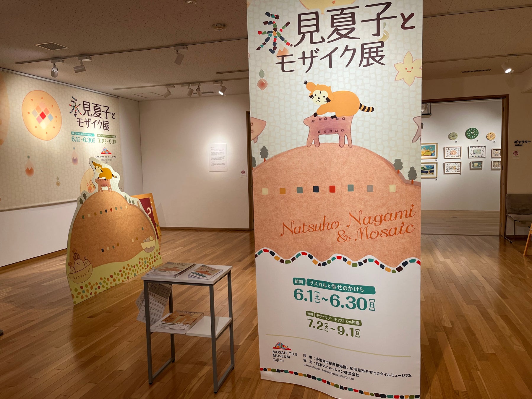 前半では「あらいぐまラスカル」のイラストとタイル作品が展示され、後半ではオリジナル作品と他のモザイクアーティストの作品が展示されます。