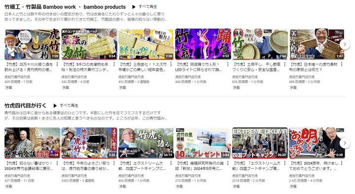 - 竹製品の魅力や製造工程、イベント映像など幅広いコンテンツ提供