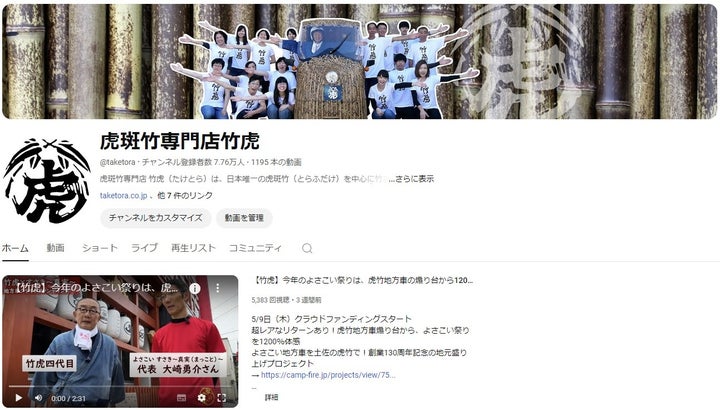 - 竹材専業メーカー「竹虎」のYouTubeチャンネル登録者数77,000人突破