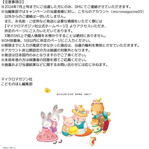 - こどものほん編集部公式アカウントをフォローし、キャンペーンポストをRPすると抽選で2名に絵本がプレゼント