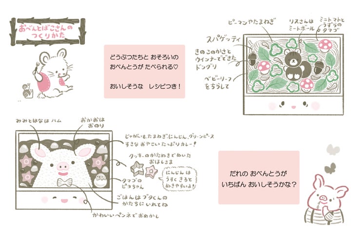 絵本は森の動物たちとの楽しいピクニックをテーマにしており、巻末にはお弁当のレシピも掲載されています。