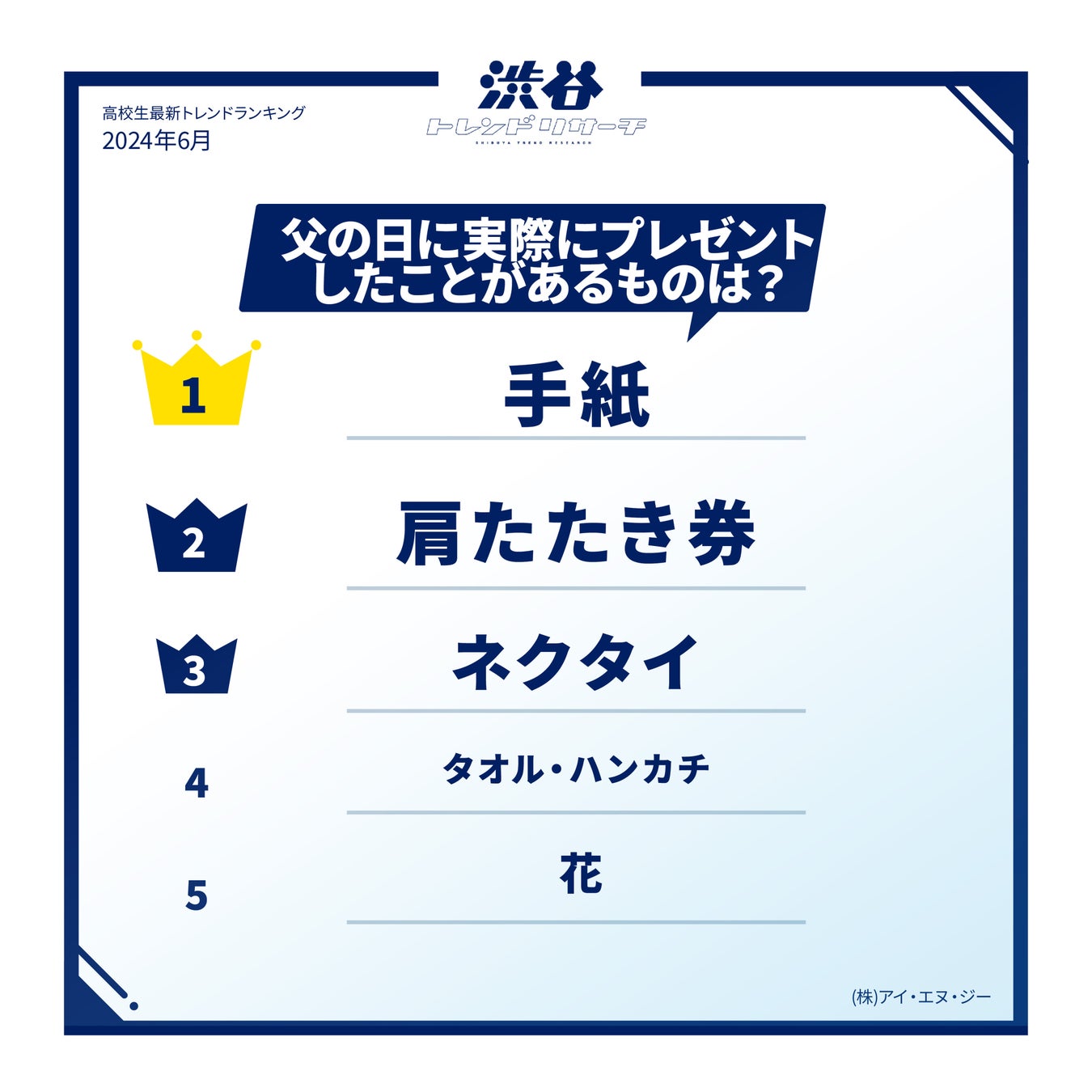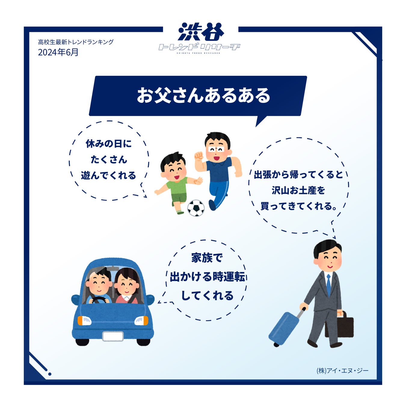 株式会社アイ・エヌ・ジーは30年にわたり、高校生向けのマーケティング支援を行っており、最近では渋谷トレンドリサーチで父の日に関する調査を実施しました。