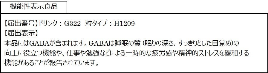 - GABA100mg含む機能性表示食品、睡眠質向上サポート