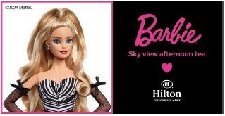 米国マテル社の日本法人であるマテル・インターナショナル株式会社は、バービーの誕生65周年を記念して、ヒルトン福岡シーホークとコラボレーションしたスイーツビュッフェ「Barbie♥Hilton Fukuoka Sea Hawkスイーツビュッフェ」を2024年6月1日から9月1日の土・日・祝日限定で開催します。