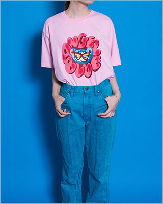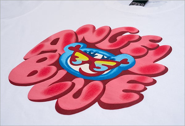 - エンジェルブルーナカムラくん復刻アイテム、発泡ロゴTシャツ
