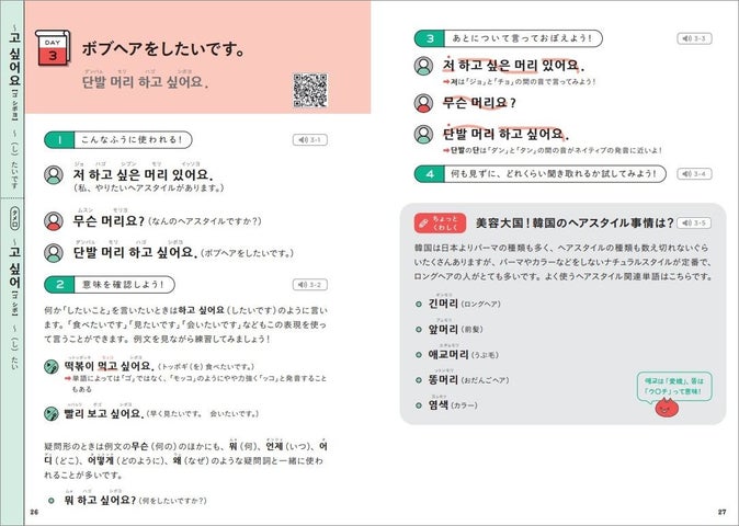 初心者向けにはハングルの基本も解説されており、楽しく続けられる工夫が施されています。