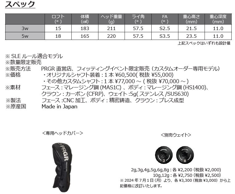 販売はPRGR直営店やフィッティングイベントでのみ行われ、カスタムオーダー専用モデルとなります。
