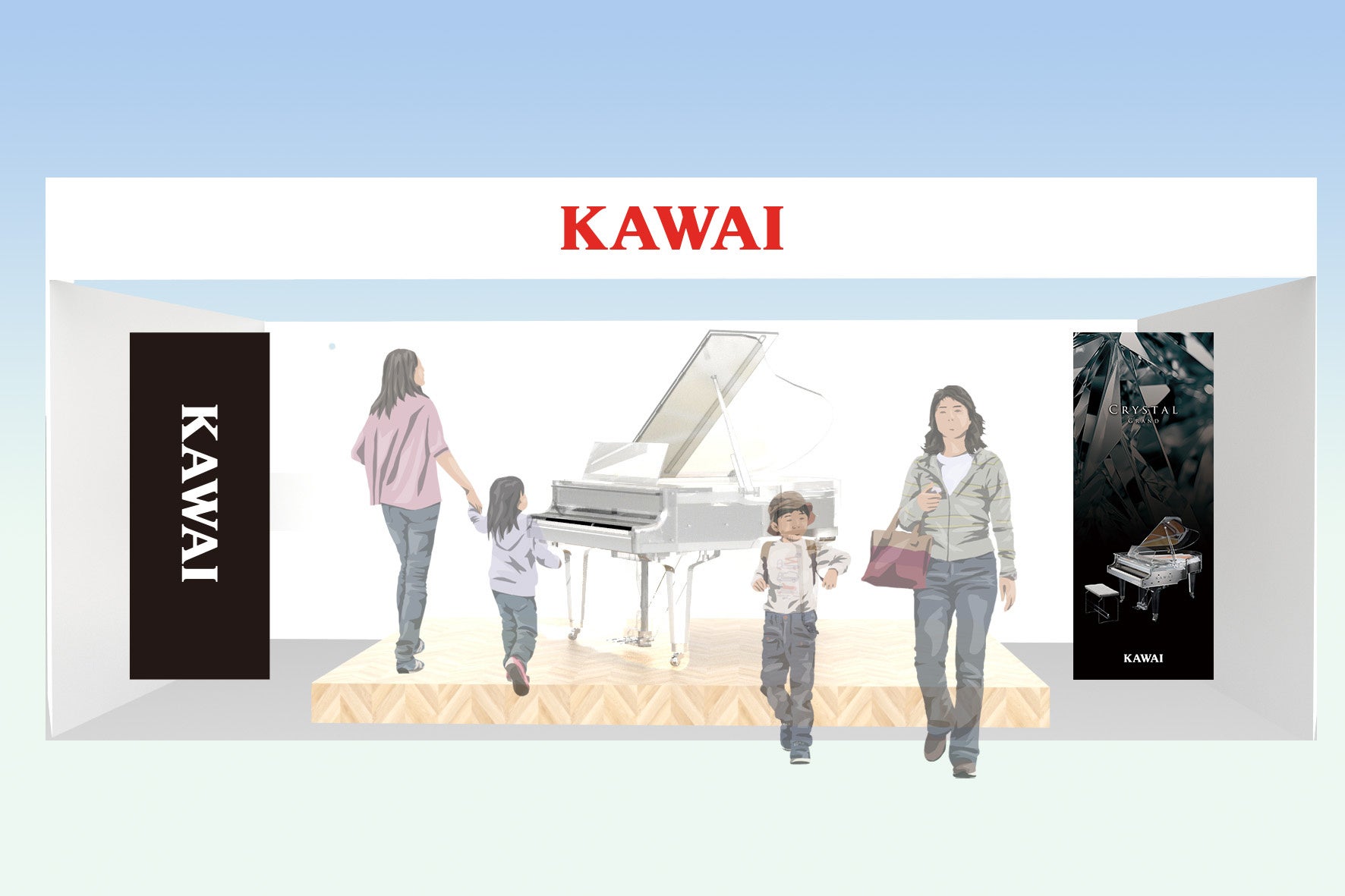 カワイの展示ブースでは「CR-40」の展示やミニコンサートが行われ、SNSフォローキャンペーンも予定されています。