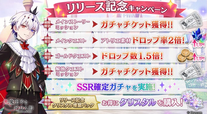 株式会社ドリコムは、2024年6月3日に新作ゲーム『悪魔王子と操り人形』をリリースしました。
