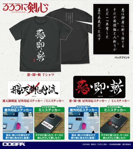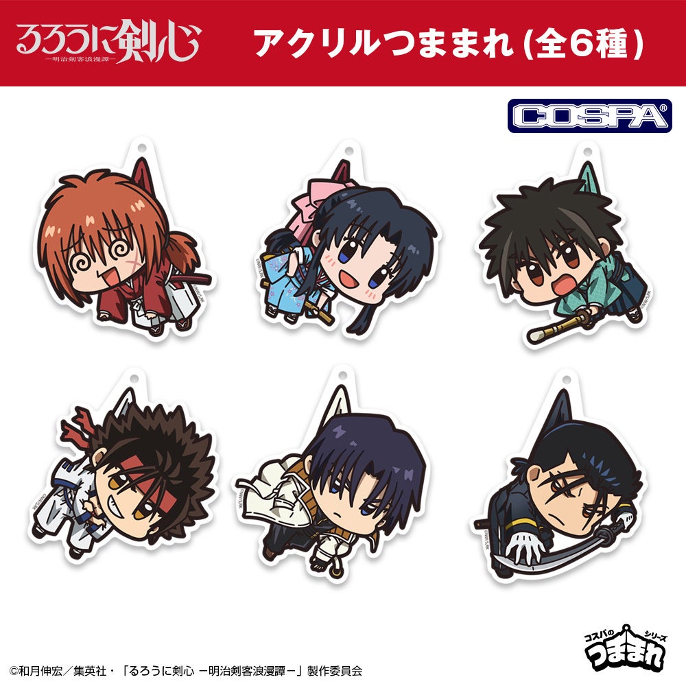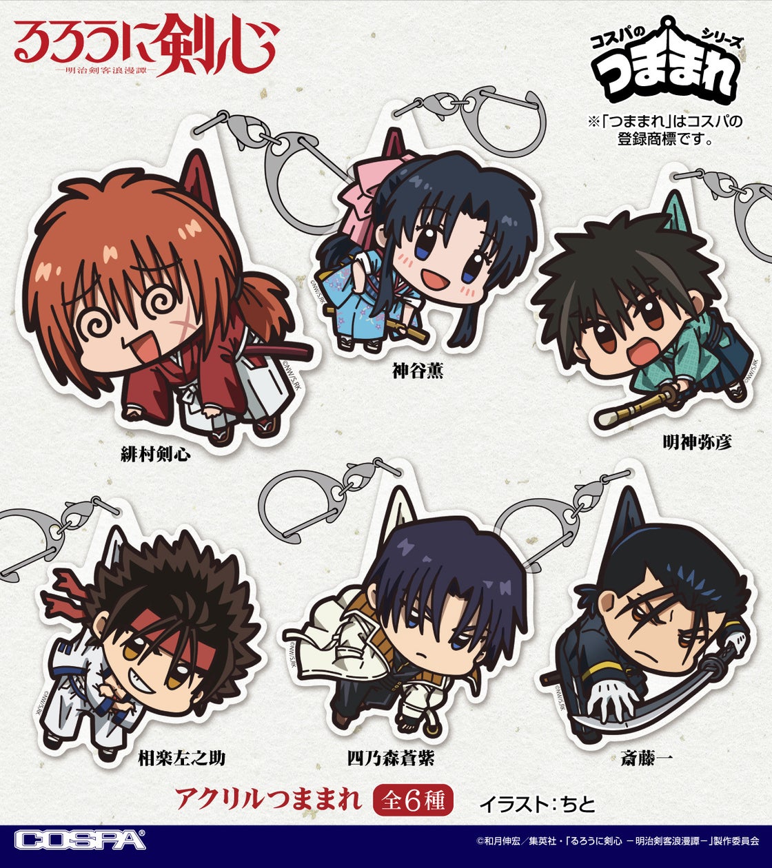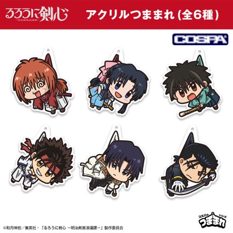 COSPAから、TVアニメ「るろうに剣心」の緋村剣心たちをデフォルメしたアクリルつままれ6種やTシャツ、ステッカーが登場します。
