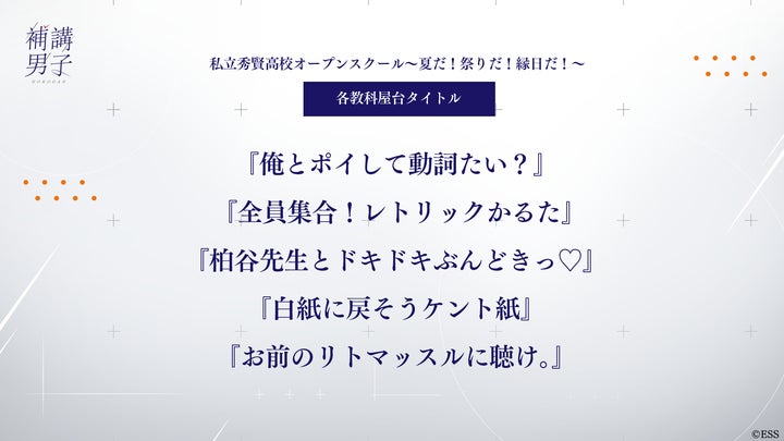 株式会社アース・スター エンターテイメントがリリースした”着席”プロジェクト「補講男子」の最新情報をお伝えします。